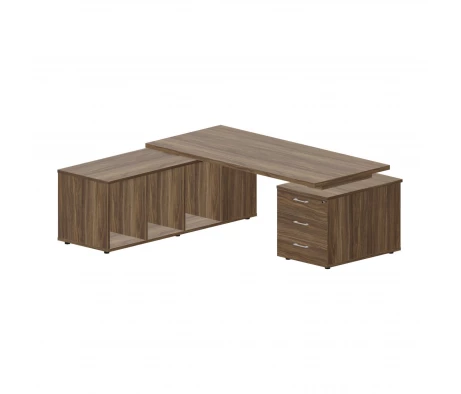 Стол руководителя на 2-х опорных тумбах (левый) 180х180x73,5 Norman Орех